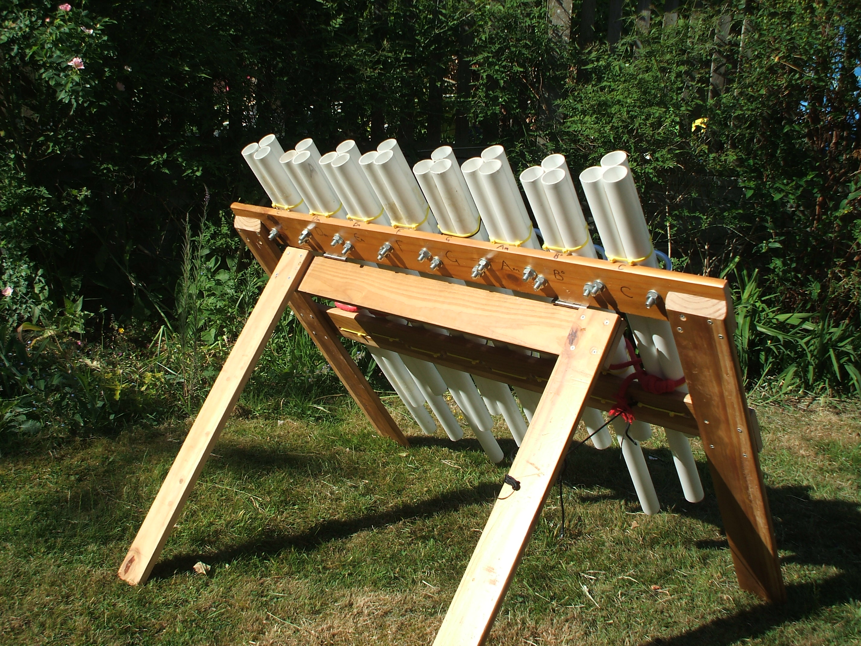 Chord Batonka at Blewbury School, Oxon The tubes are grouped in threes with three different lenghts/tunings so that a chord is played with each time they are struck.